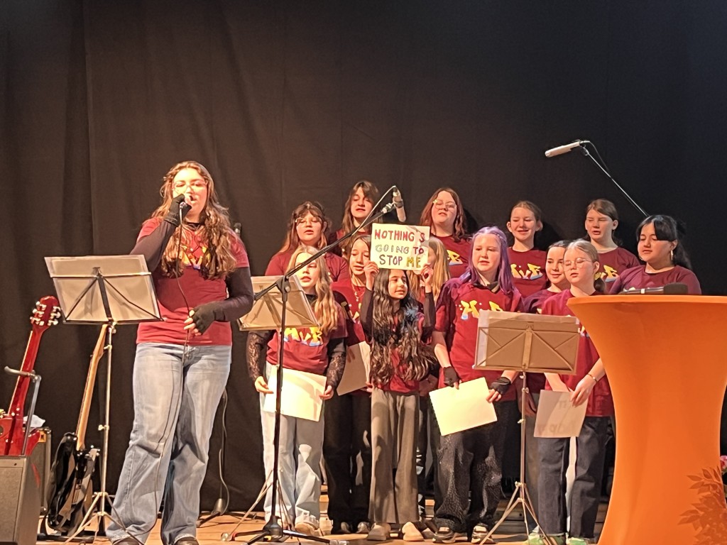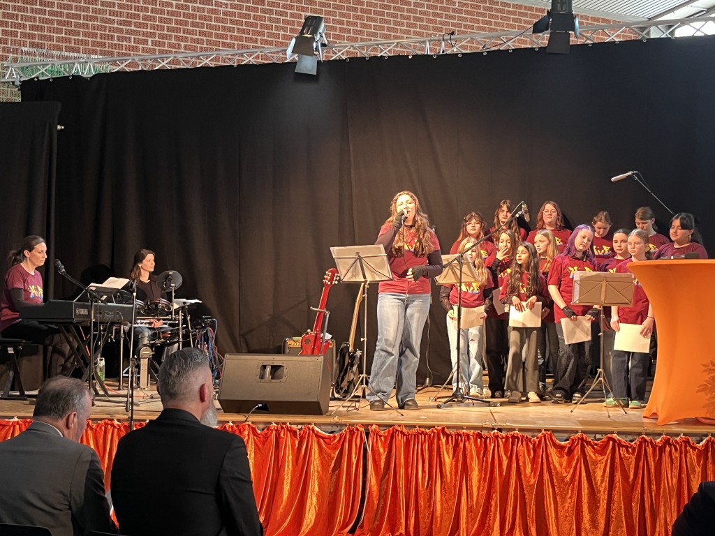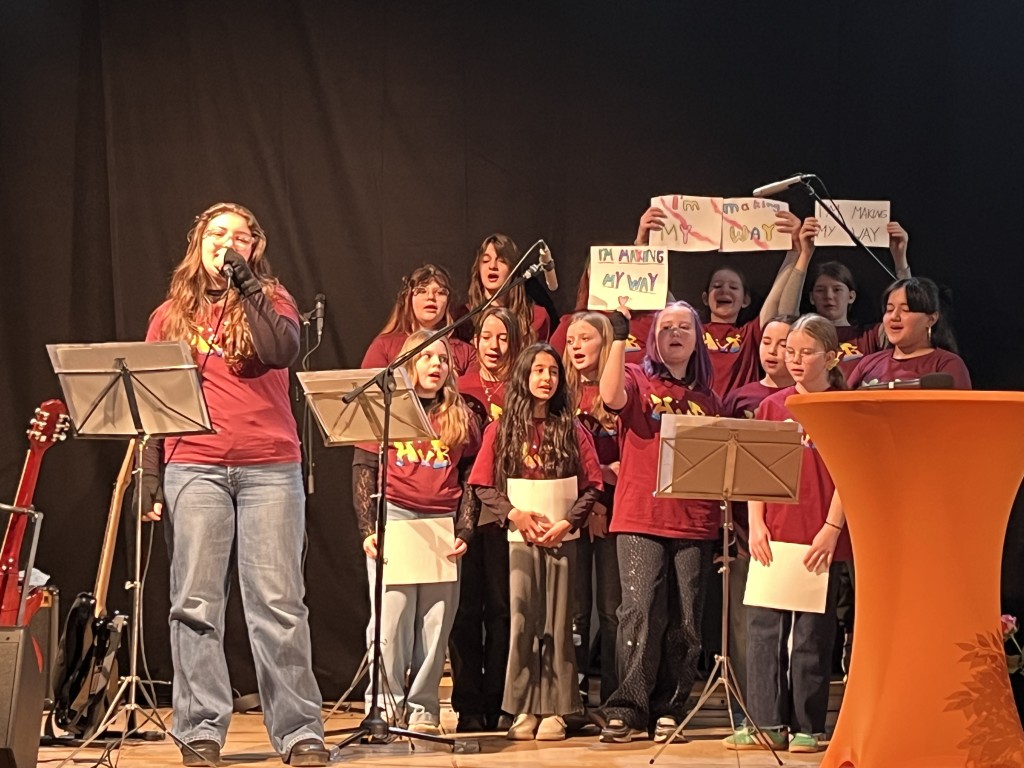 Für einen besonders stimmungsvollen Rahmen sorgte unsere Schulband, die mit mehreren musikalischen Beiträgen begeisterte. Auch der Lehrerchor und der Schülerchor trugen mit ihren Auftritten wesentlich zur feierlichen Atmosphäre bei und erhielten viel Applaus aus dem Publikum. Diese Beiträge zeigten eindrucksvoll, wie viel Talent und Zusammenhalt in unserer Schule steckt.